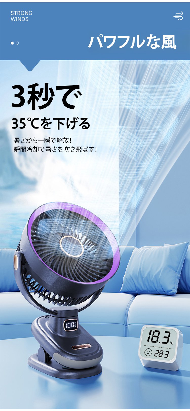 ポータブルクリップ式扇風機